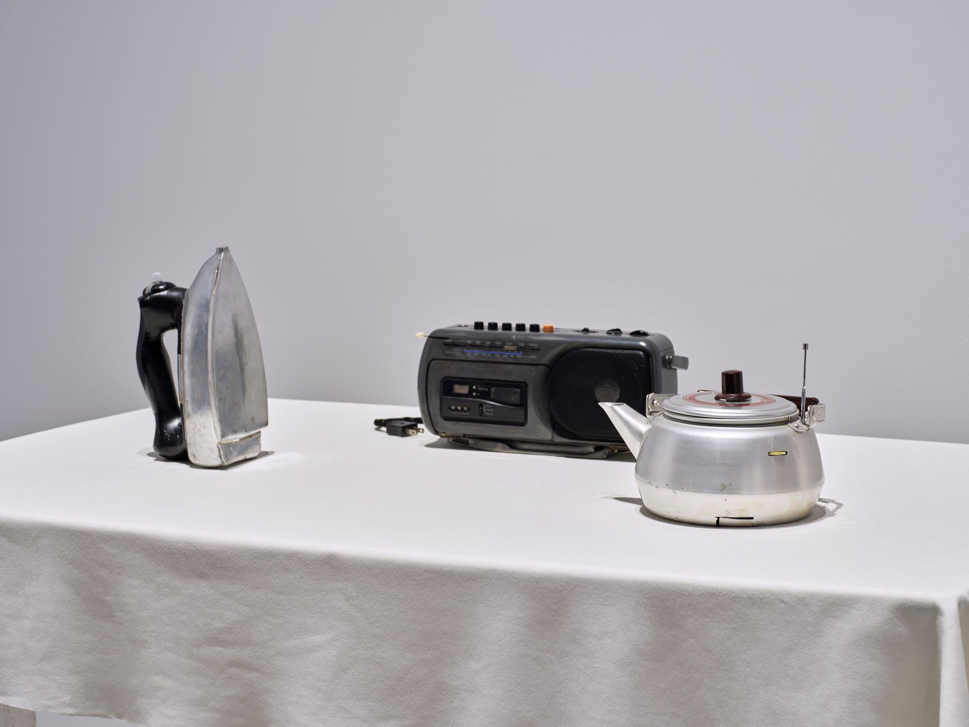 김범의 작품은 대상에 관해 지금껏 우리에게 전개되고 있던 이야기를 전복하거나, 전개되지 않던 이야기를 새롭게 등장시킨다. 〈임신한 망치〉는 망치의 몸통을 임산부의 배처럼 불룩하게 만든 작품이다. 이런 망치라면, 테이블에 못이 박혀 있고 그 망치가 놓여 있더라도 이것으로 못을 박았다고 판단하기 어렵다. 그 대상에 관해 떠올린 이야기 속 그 대상의 모습과 이 대상의 모습이 다르기 때문이다. 오히려 새로운 이야기를 만든다. 임신했다는 제목을 보며 이 망치가 왜 임신하게 되었는지 판단하기 위해서다. 망치가 임신할 수 있는 이야기를 만드는 것이다. 또 다른 작품, 〈라디오 모양의 다리미, 다리미 모양의 주전자, 주전자 모양의 라디오〉도 이와 비슷하다. 해당 작품은 각 사물의 모습과 기능이 바뀌어 있다. 라디오의 모습을 갖추고 있으나 바닥은 다리미의 바닥처럼 생겼다. 다리미의 모습을 갖추고 있으나 그 끝이 주둥이 형태여서 물이 나오는 구멍처럼 생겼다. 주전자의 모습을 갖추고 있으나 안테나가 달려 있다. 이 역시 그 대상들에 관해 떠올린 이야기 속 그 대상들의 모습과 이 대상들의 모습이 다르다. 기존에 경험한 이야기로 판단하기 어렵다. 새로운 이야기로도 나아가기 어렵다. 다리미와 주전자와 라디오라고 판단할 때, 이야기 속 외관으로 판단해야 할지 이야기 속 용도로 판단해야 할지 모호하기 때문이다. 두 경우 모두 속하기 때문에 확정 짓기 어렵다.